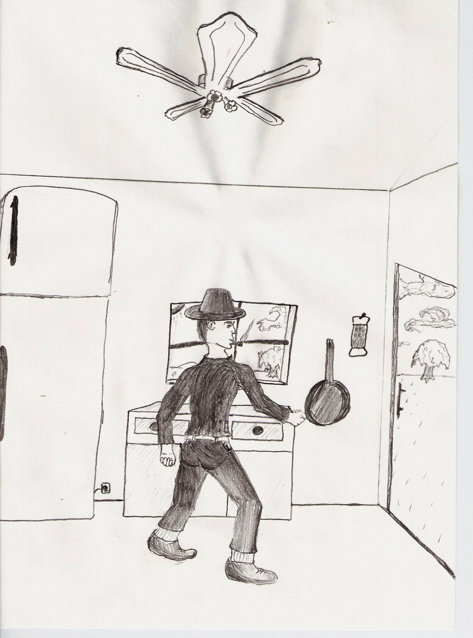 Charles explores the kitchen in Geoffrey's mansion.