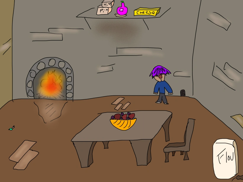 At some point, Hat Kid's Friend lived in a house in The Shadow Realm. There, he met Xaq, who'd been turned into a snail. He had a magic potion which would help him, but it was up on a shelf, so he thought it was "kinda risky" to climb up there to get it. Ultimately, Xaq got the potion without his help. ("PCG Anniversary Special II" by Chris)