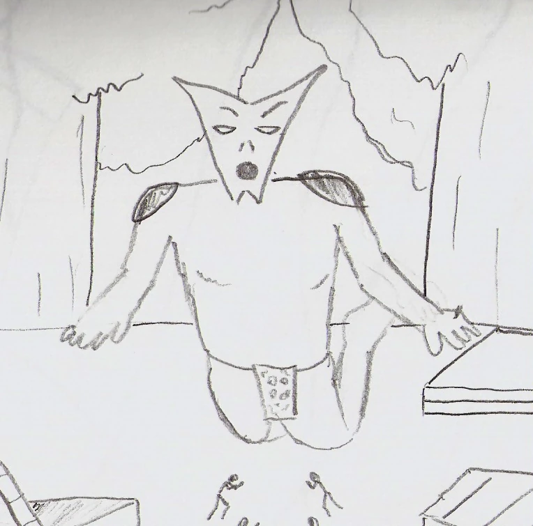 Ari and Cassie encountered it briefly, as a dormant statue, during their explorations of the forest, but paid it little heed. Their oversight would soon come back to haunt them. (Squids in Forests Series: "Further Sylvan Squidisms")