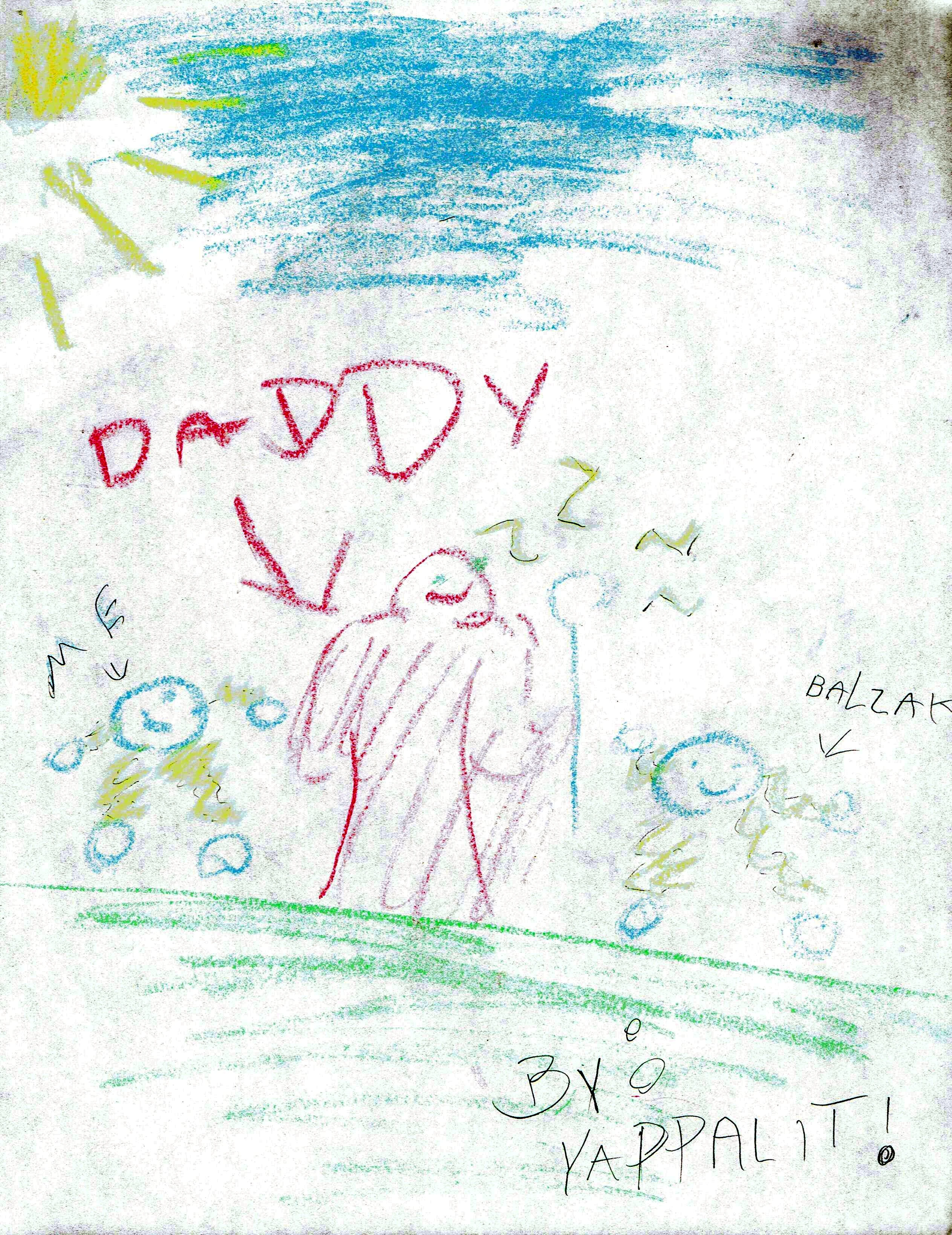 It turns out that Yppit's "accidental lab creation" was the same event that created the rest of the Sphere Children as well, as Yppit is really Yappalit Globotron. Yappalit was the second Sphere Child created, after his brother Balzak. He had a close bond with his brother and his "father", Ginkus. He made a drawing of the three of them.